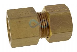 Legris brass compression fitting with female BSP parallel threads and suitable for metric outside diameter tube.
