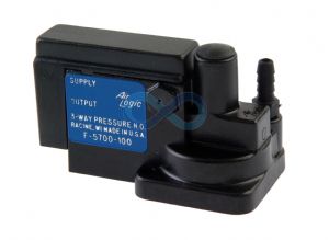 A pressure piloted 3 way valve with adjustable pressure pilot setpoint. Available in normally open or normally closed version. The normally open valve senses the adjusted pressure setpoint and turns the output off. The normally closed valve senses the adjusted pressure and turns the output on.